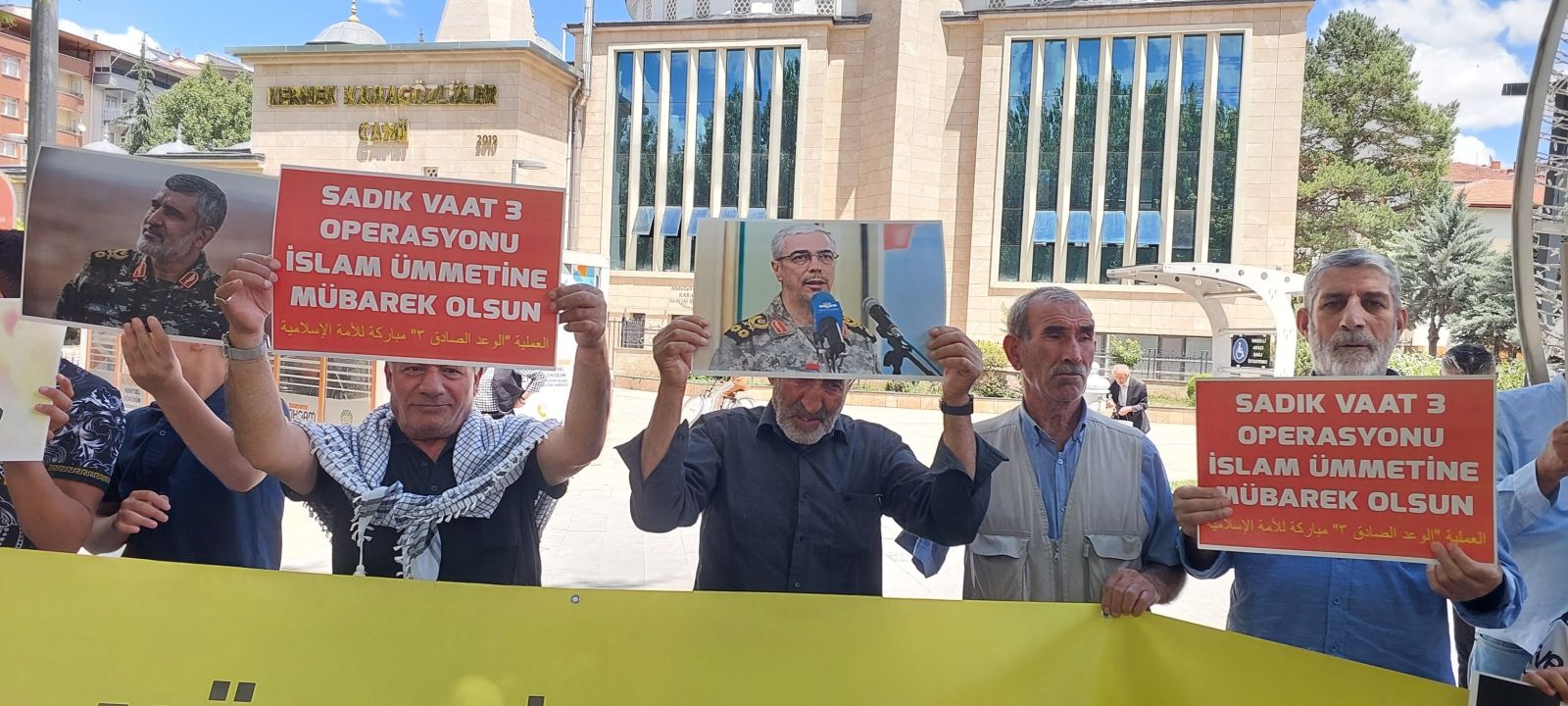 Siyonist İsrail ve Büyük Şeytan Amerika'nın Tahran'a, İsfahan'a ve Tebriz'e attığı bombalar esasında Ankara'ya, İstanbul'a ve Malatya'ya atılmıştır. Nasıl 15 Temmuz fetöcü NATO darbesinde İran bizim yanımızda durduysa biz de İran’ın yanındayız ve onları destekliyoruz.