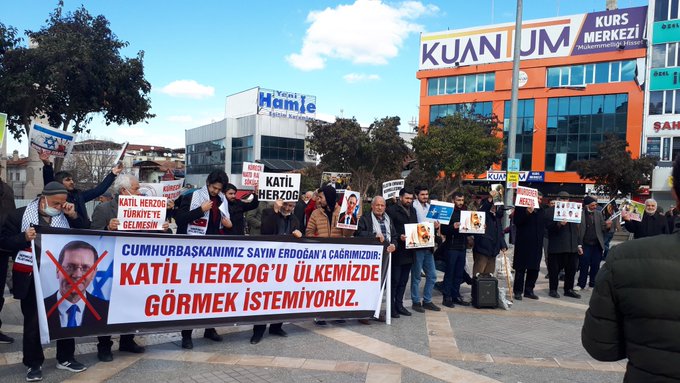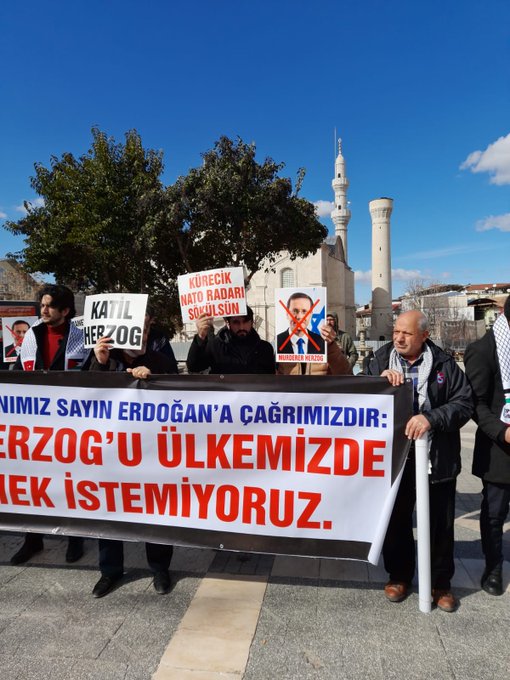 Biz katil cumhurbaşkanı Herzog'u şehit kanlarıyla sulanan ülkemiz topraklarında görmek istemiyoruz. Bu yanlıştan bir an önce dönülmeli ve bu davet iptal edilmelidir.